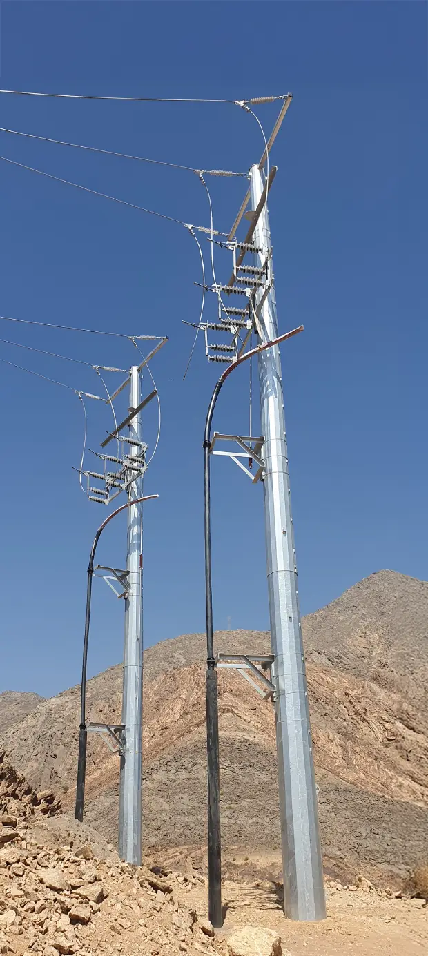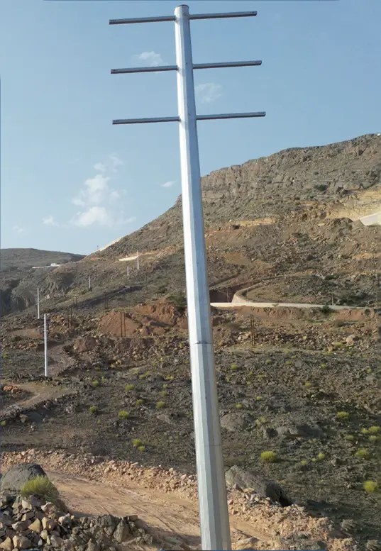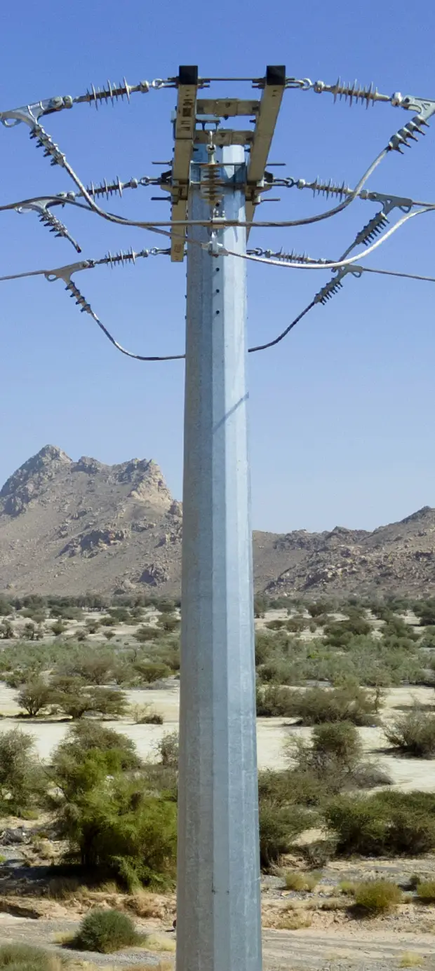 The galvanised steel distribution poles sustain the electric cables in a reliable and safe way maintaining the users safe, connected and productive granting the economic development.